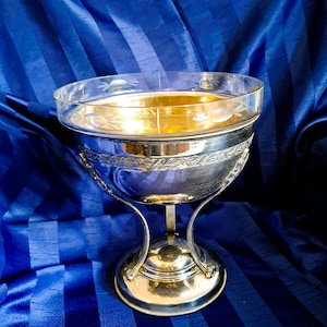 This Venetian bottle made of cobalt blue glass with silver decorations is an eye-catcher. The bottle was mouth-blown and decorated by hand. Extremely decorative and useful. Condition: The glass is in very good condition, no chipping, etc. The silver decorations on the neck and stopper are visibly rubbed . Dimensions: height 26 cm, diameter 8 cm
