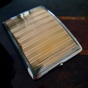 This jewellery box reflects the elegance of the 1950s. The combination of black, red and gold accents is typical of the period. Despite the delicate materials, the box has survived the last 70 years well. Of course, there are signs of wear, but this patina adds to the aura of this piece, they tell a story. Condition: Good considering its age. There is a slight damage on the back on the right side at the bottom (see photos). And with a matching key. Dimensions: Width 25 cm, depth 18 cm, height 10 cm Customers from the USA: Please contact us before purchasing in connection with the tariffs imposed on goods from the EU as of 29 August 2025.