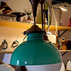This attractive table lamp was probably made in the 1950s or 1960s. The lampshade was badly damaged, so we looked for and found an old lampshade that matches the style of the lamp. Condition: Good condition. The base and gooseneck of the lamp are chrome-plated and in good condition except for a few points. A small crack has formed in one place on the base of the lamp, this does not affect the stability or function in any way. Dimensions: Height 40 cm, diameter lampshade 13 cm, diameter lamp base 14 cm