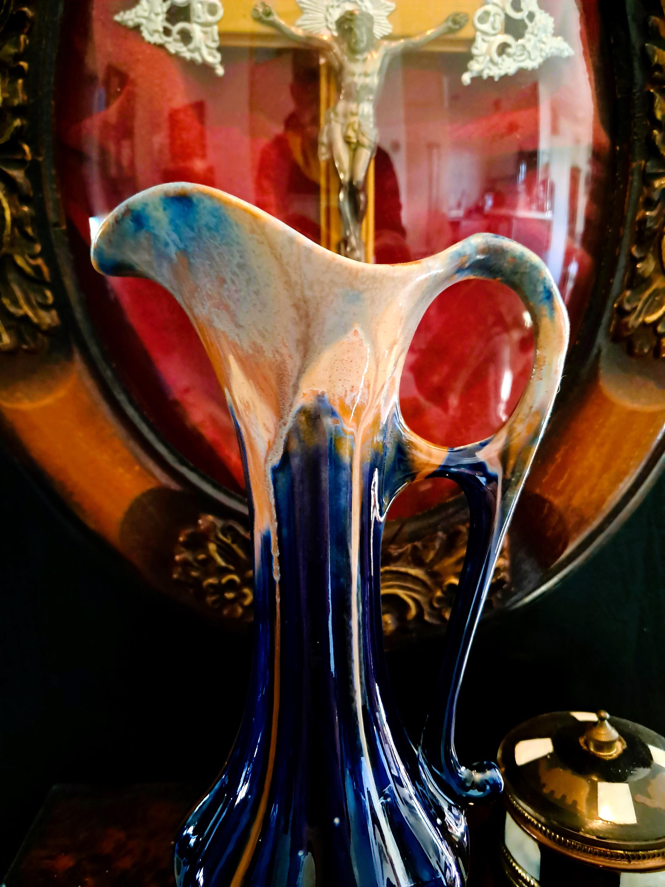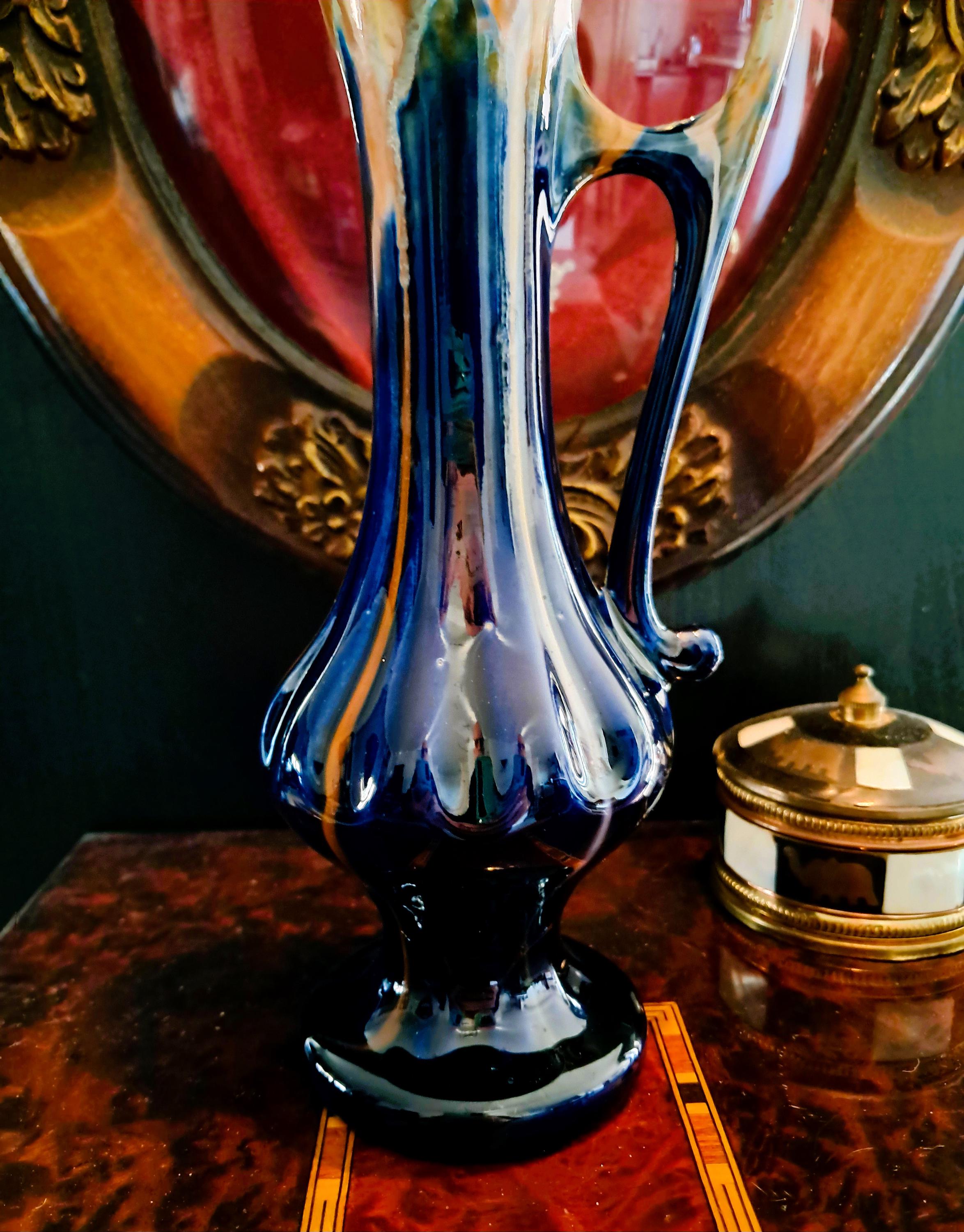 This elegant ceramic piece by Faïenceries de Thulin, Mario Baeck & Willy van Ransbeek, featured in the 1930s sales catalogues, is pure Belgian Art Deco. The company existed from 1923 to 1973. Condition: Very good condition, no chips Dimensions: Height 23.5 cm, width 11 cm