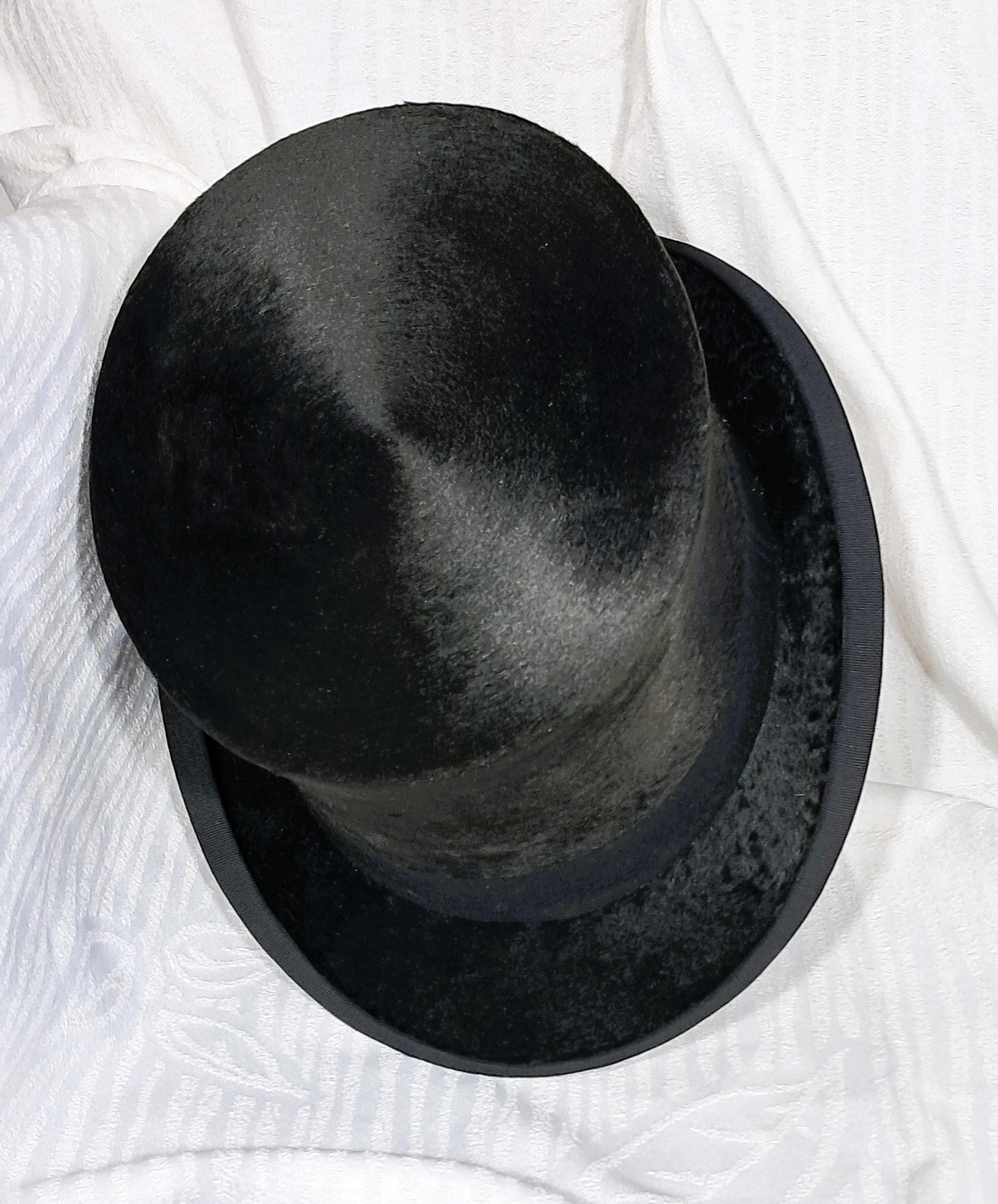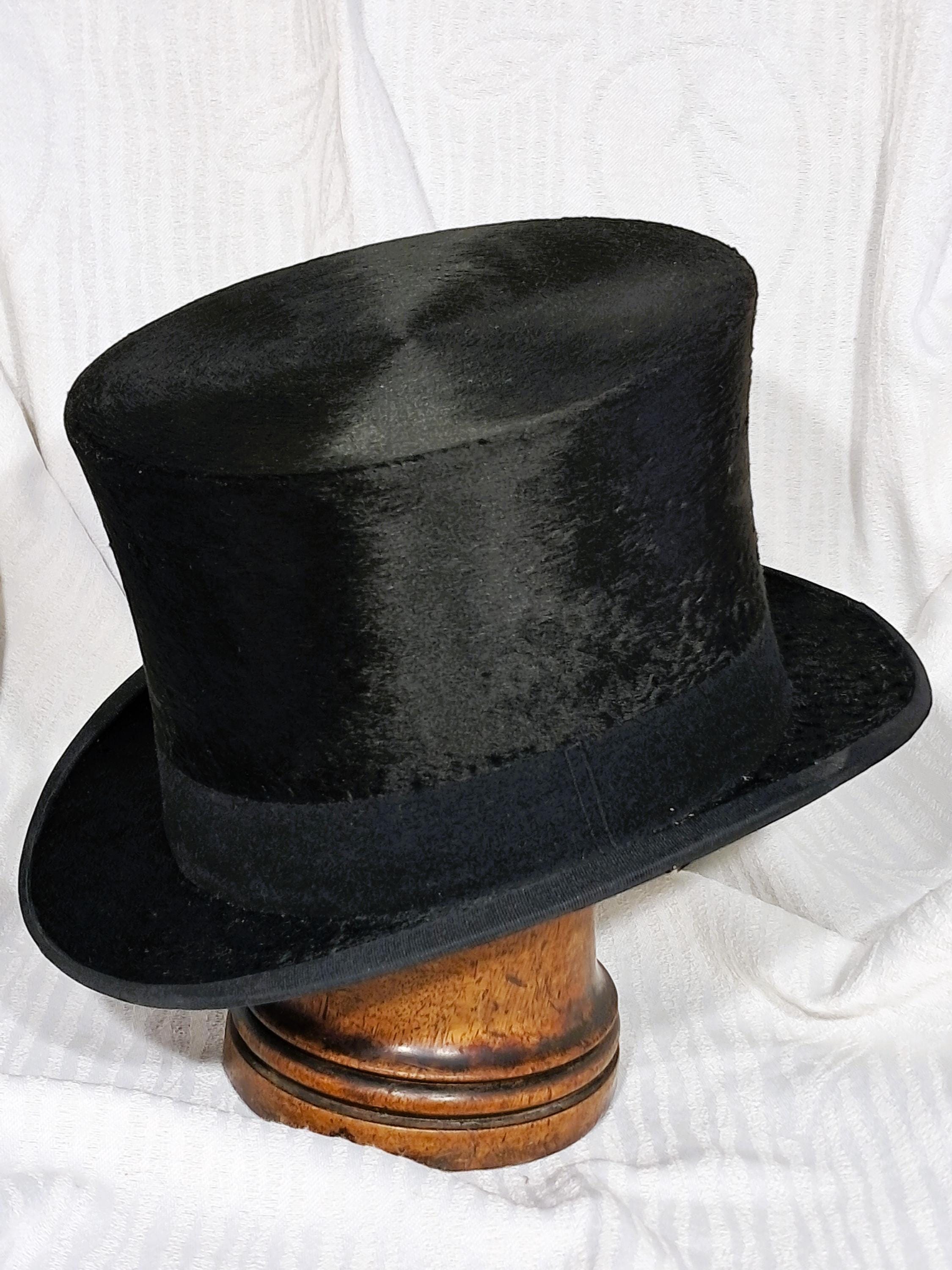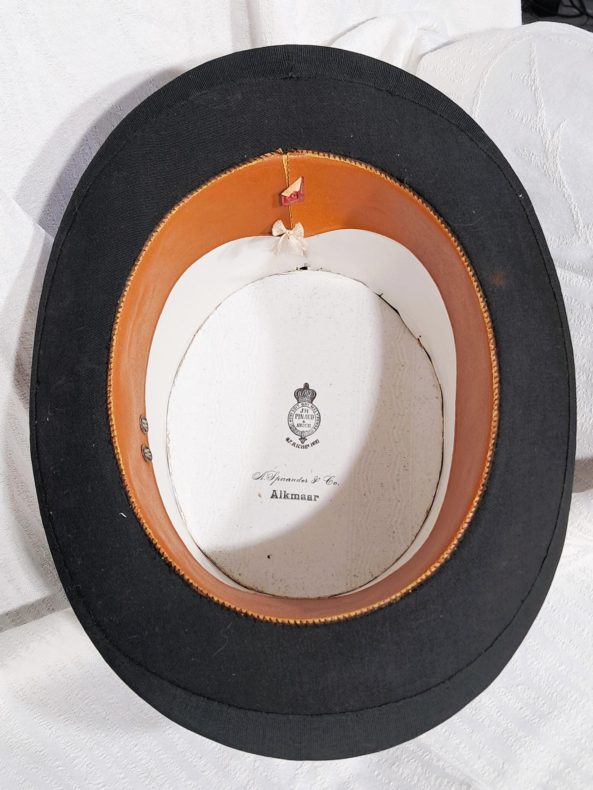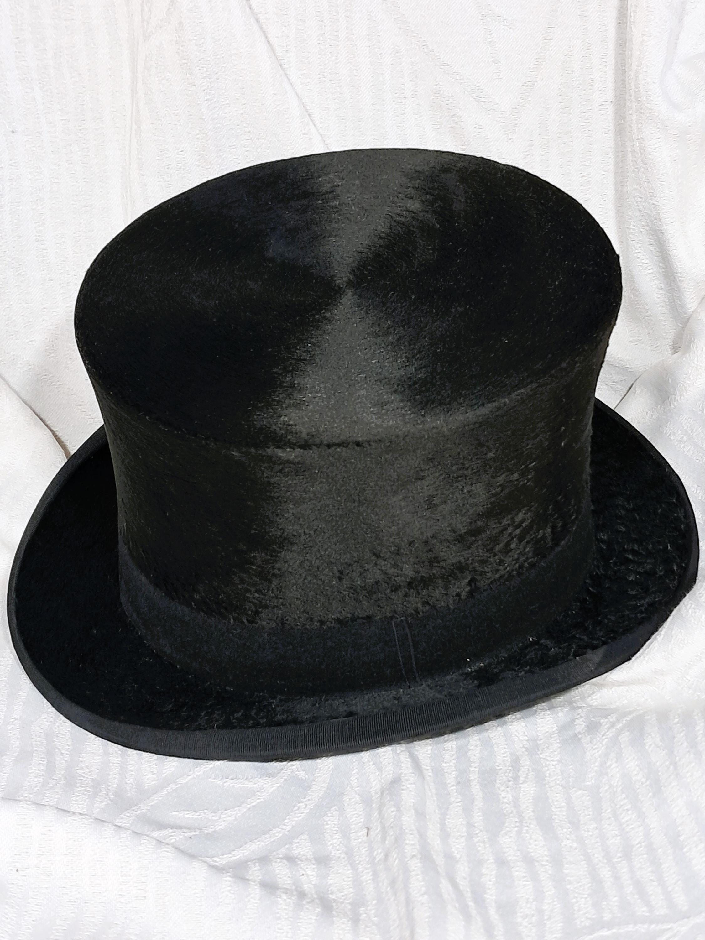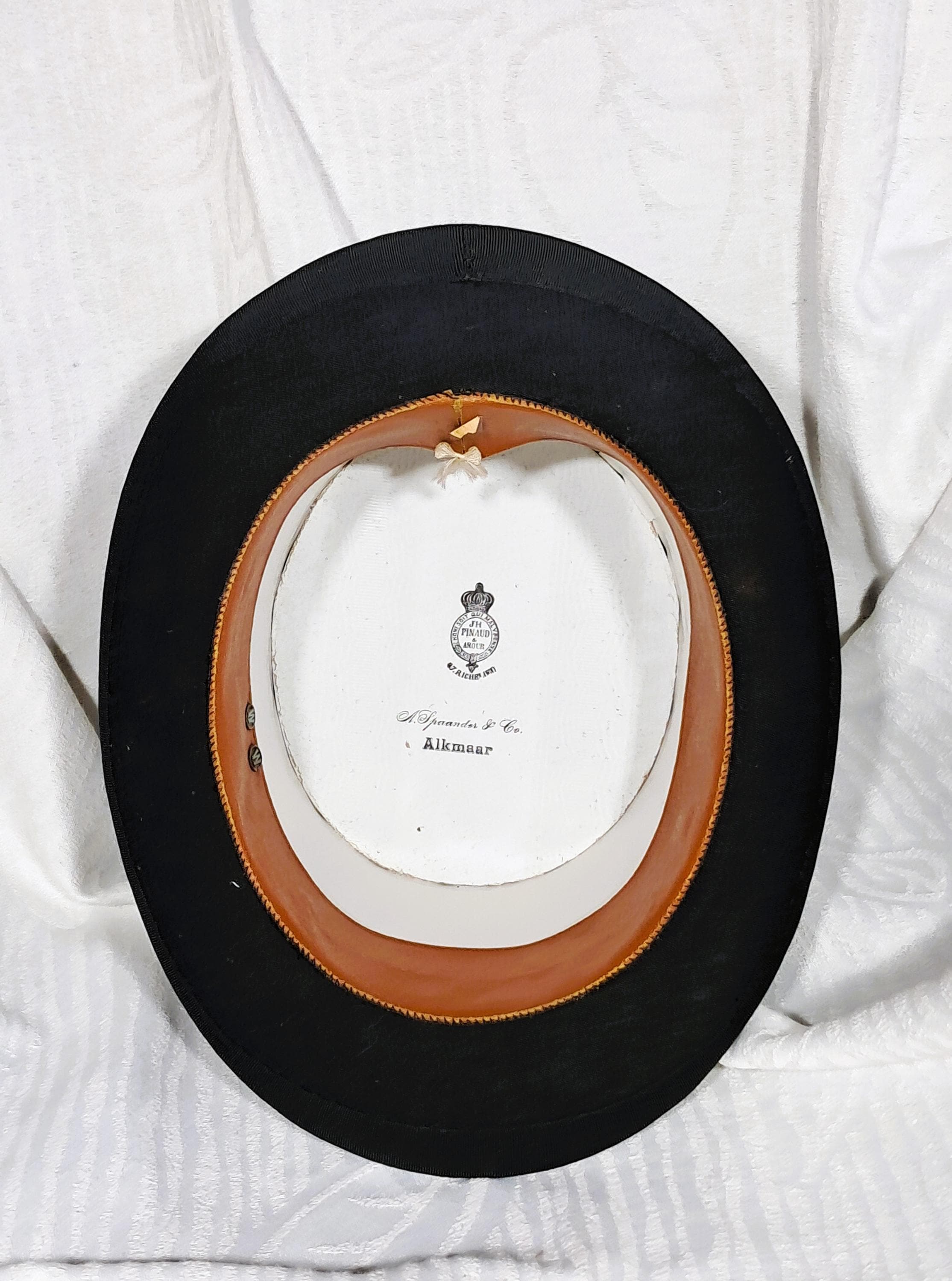 Well-preserved top hat manufactured in France and sold in the Netherlands. The top hat is likely to have been manufactured around 1900. Condition: Good condition, no damage, slight signs of wear Dimensions: Height 13.5 cm; outer length 29 cm; outer width 23 cm; inner length 20 cm; inner width 15.5 cm; inner circumference approx. 55/56 cm